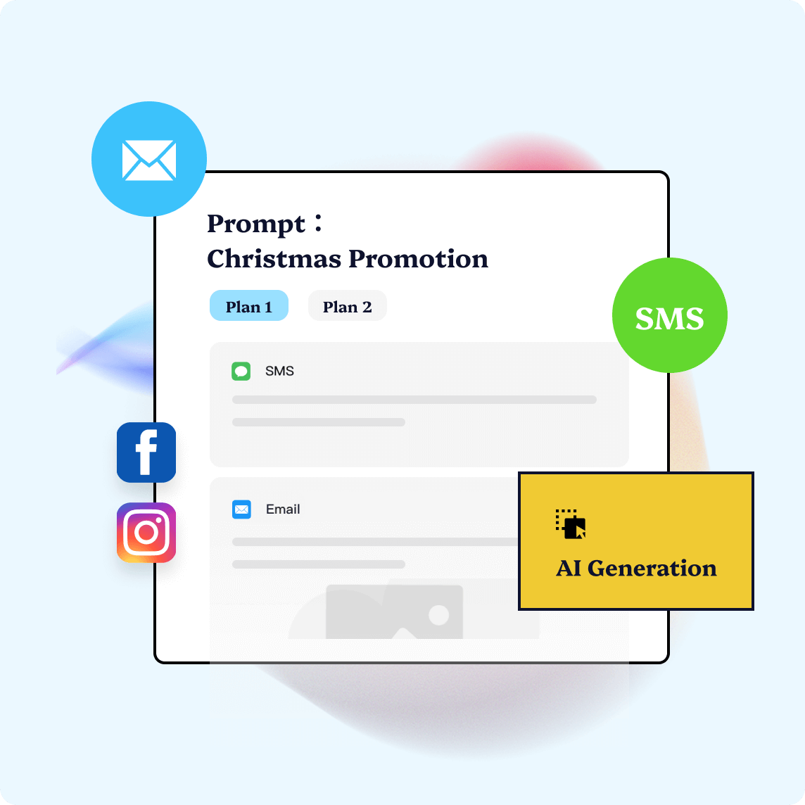 Choose your goals, define your content, select your channels, and more. Our AI tool will handle all aspects of campaign creation, generating text and images that align perfectly with your branding and communication style.